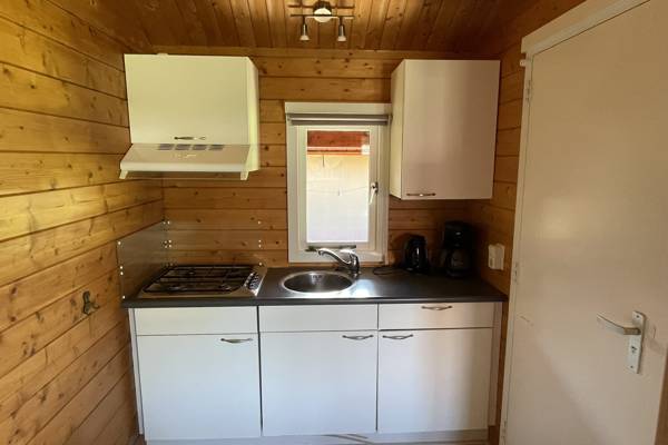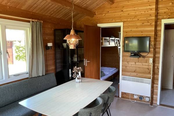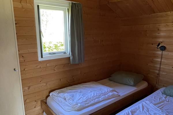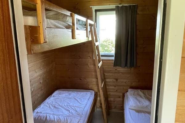 De blokhutten zijn voorzien van 2 slaapkamers, een keuken, toilet en wastafel. Beddengoed is aanwezig. Voor een douche wandel je naar het naastgelegen toiletgebouw (zie plattegrond). Je neemt je eigen handdoeken mee. De blokhutten zijn ook geschikt om in het voor- of naseizoen te huren, want er is elektrische verwarming in het huisje optioneel bij te huren.